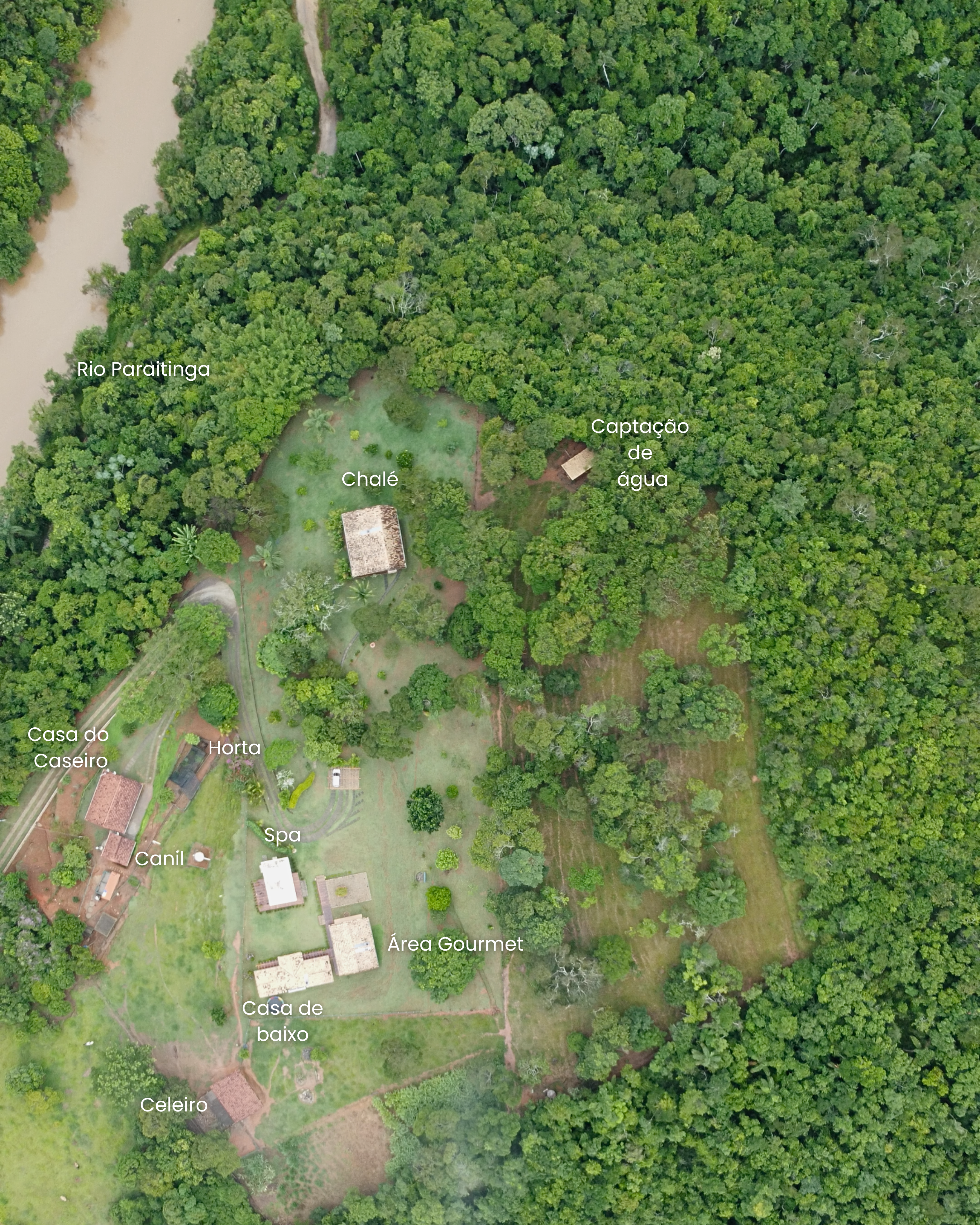 A extensão total do sítio é de 29 hectares (11,98 alqueires)